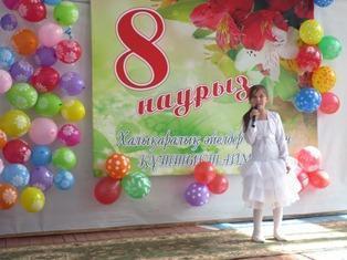 Көктемгі мерекелеріңізбен құттықтай отырып, әрдайым әдемі, жылы жүректі аналық абыройлы атақтарыңыз биіктей берсін. Зор денсаулық, мәңгі жастық пен сұлулық тілеймін!