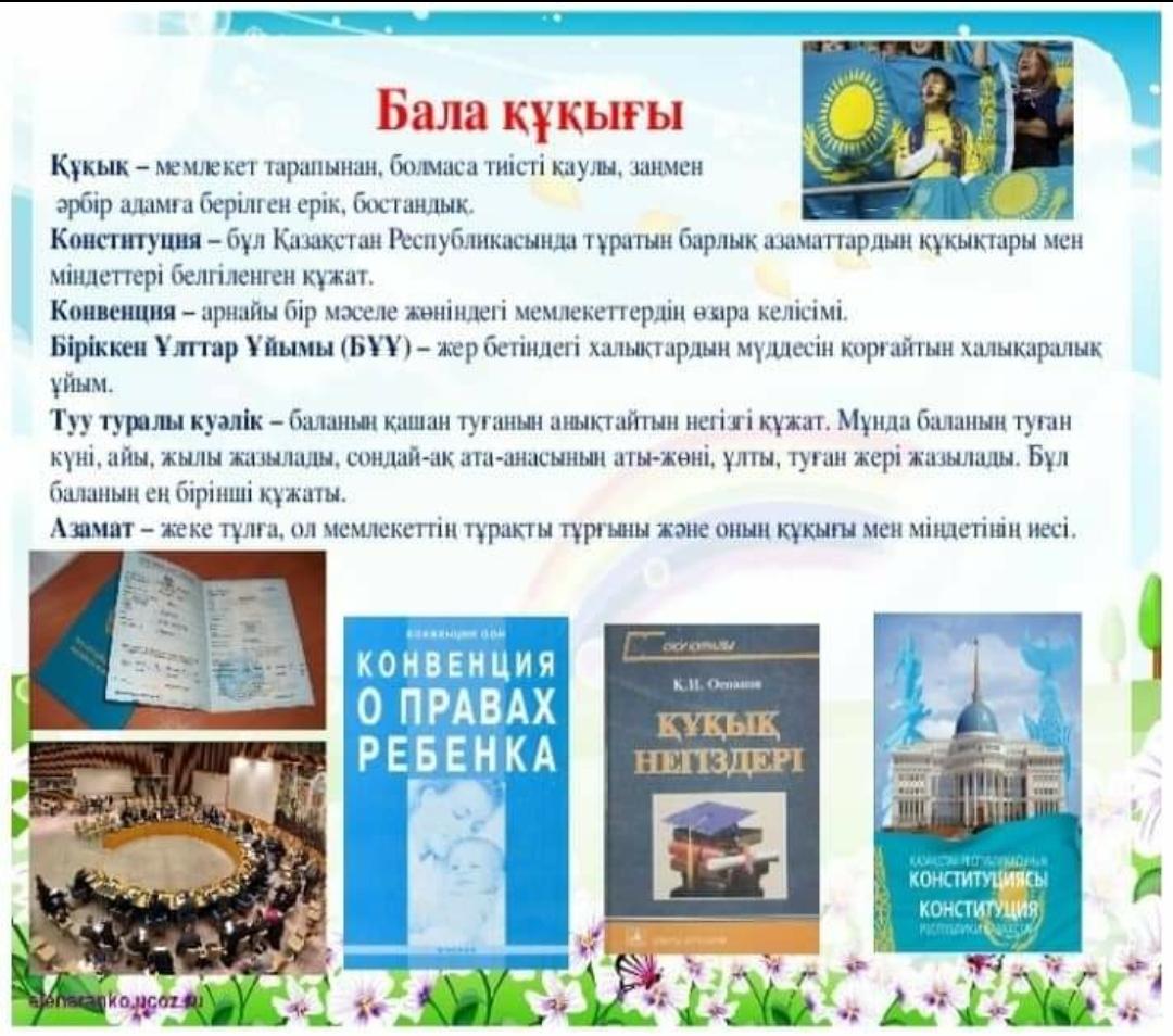 Шоқан Уәлиханов атындағы орта мектебінде, ҚР БҒМ Балалардың құқықтарын қорғау комитетінің , 20 қазан - 20 қараша күндері аралығында өткізілетін Дүниежүзілік балаларды қорғау күніне бағытталған айлық аясында , қашықтықтан 5-10 сыныптарға «Бала құқығы - адам құқығы» атты сынып сағаты талапқа сай өткізілді.
