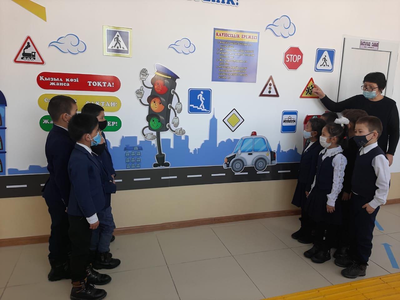 04 февраль 2021 0 1 2 3 4 5 "Қауіпсіз мектеп автобусы" акциясы. Шоқан Уәлиханов атындағы орта мектептің бастауыш сынып мұғалімі Халимова Алтынкуль "Қауіпсіз мектеп автобусы"акциясы байқауына байланысты 2 сынып оқушыларына түсіндіруде.