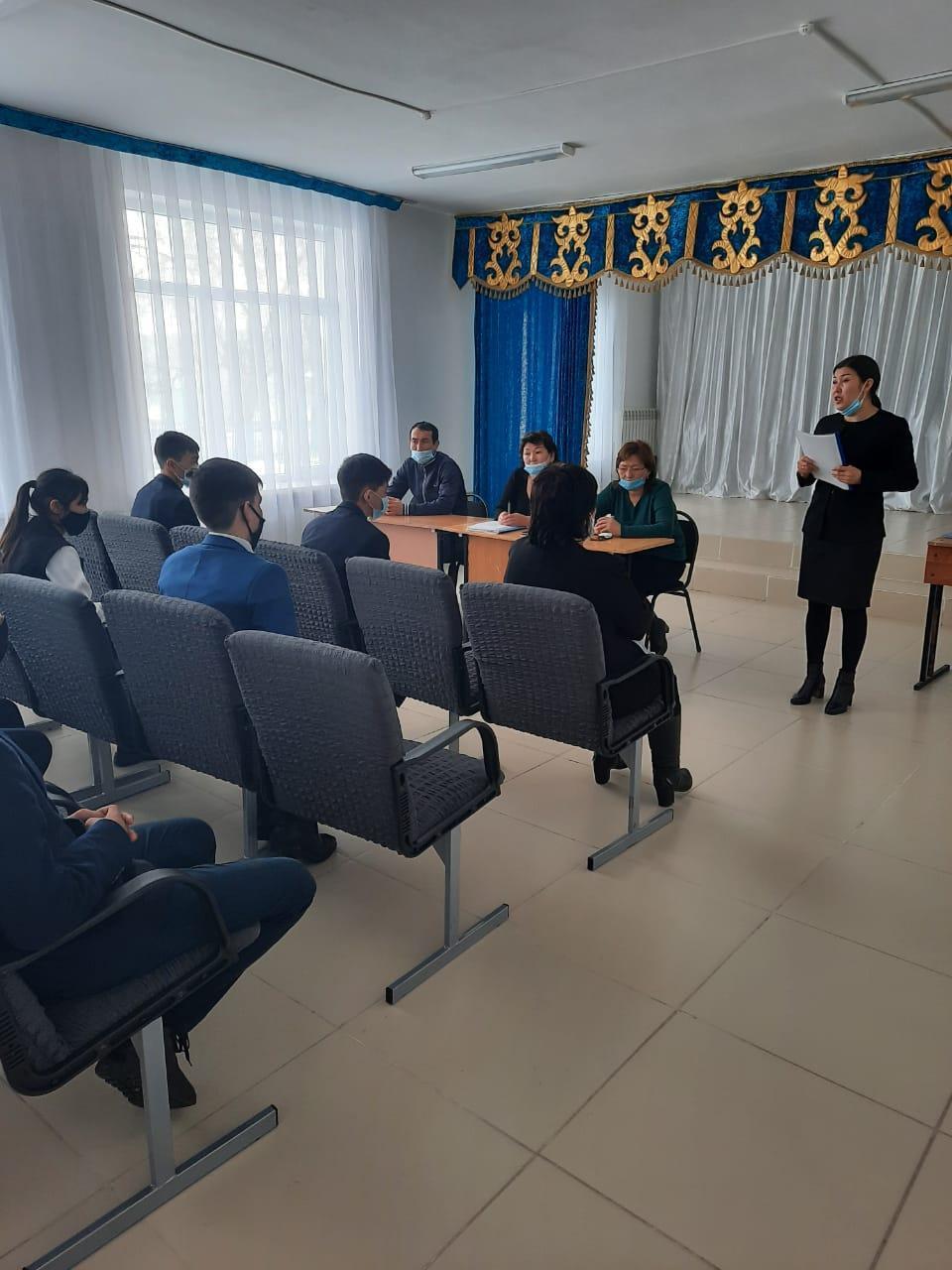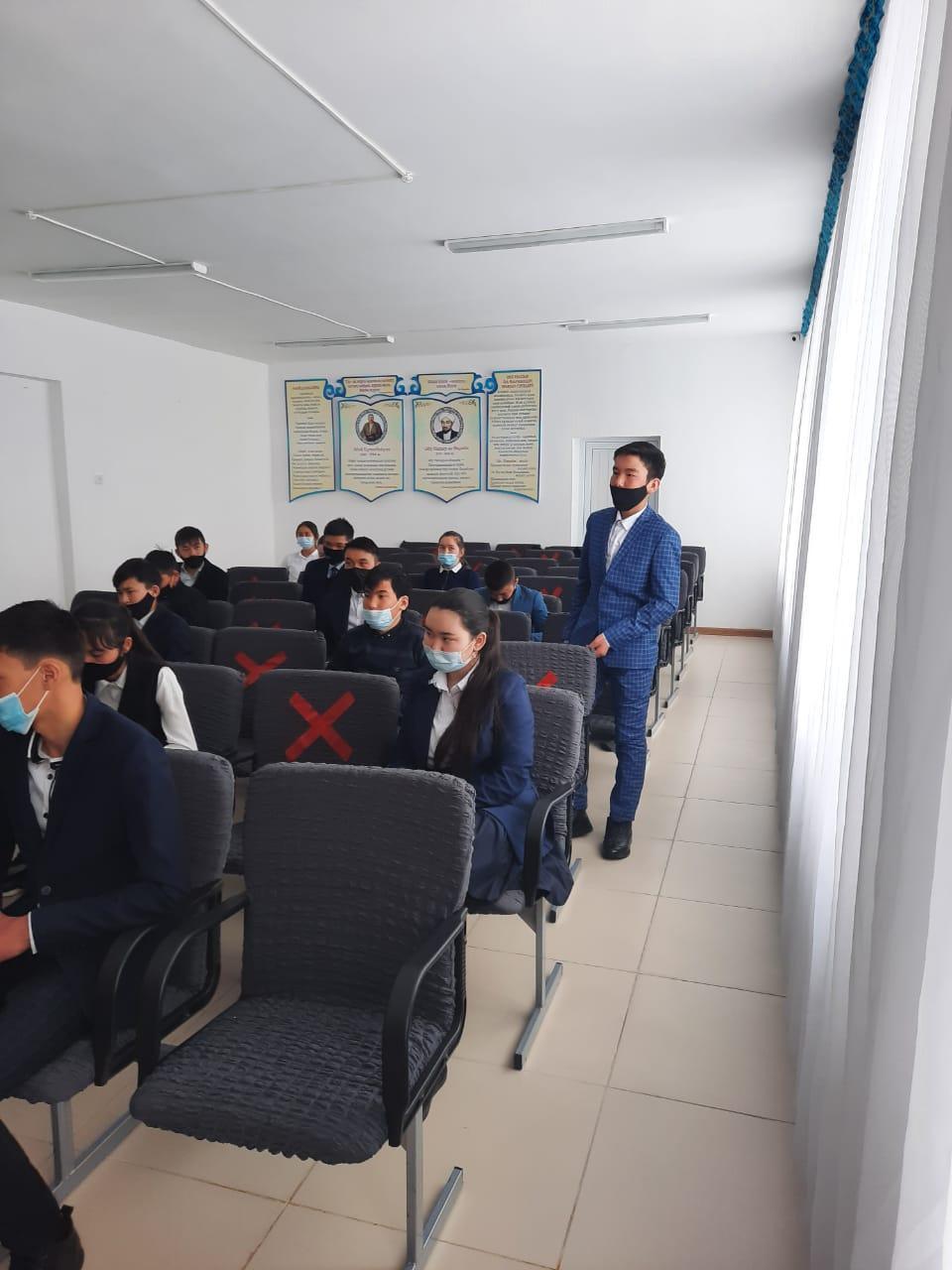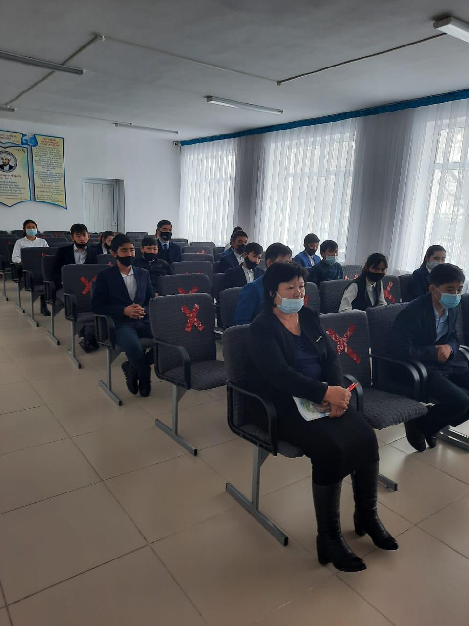 "Қазақстан Республикасындағы экстремизм мен терроризмнің қауіп-қатері" тақырыбында 9 сыныптарда ашық сабақ өткізілді. Сабақ барысында бейне ролик көрсетіліп, оқушылармен сұрақ-жауап жүргізілді. Оқушылар ойларын ортаға салып, пікір алмасты. Мұғалім мен оқушы арасында тренинг барысында оқушы сөз арқылы клиенттерді компанияға кіргізу, өнімін мақтау сияқты әдістермен рөлдік ойын ға қатысты. Тренинг соңында бұл әрекеттердің қиындығы туралы ойымен бөлісті.