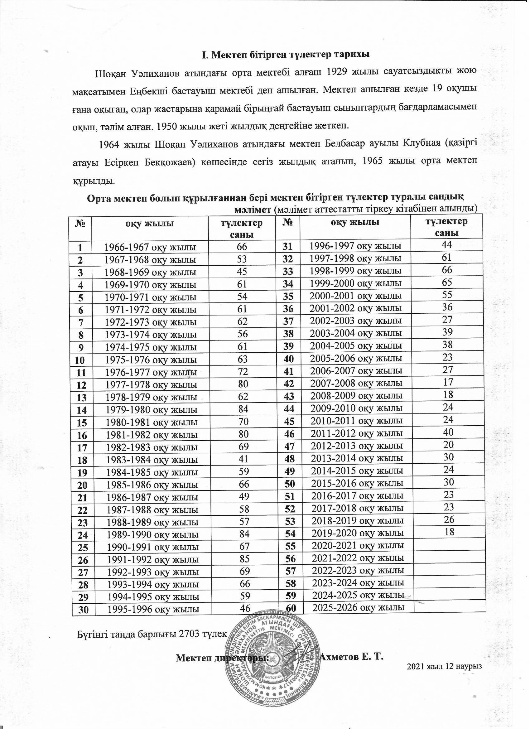 Мектепті бітірген тлектер тарихы » Ш.Уәлиханов атындағы орта мектеп