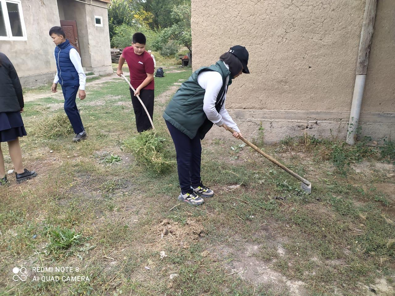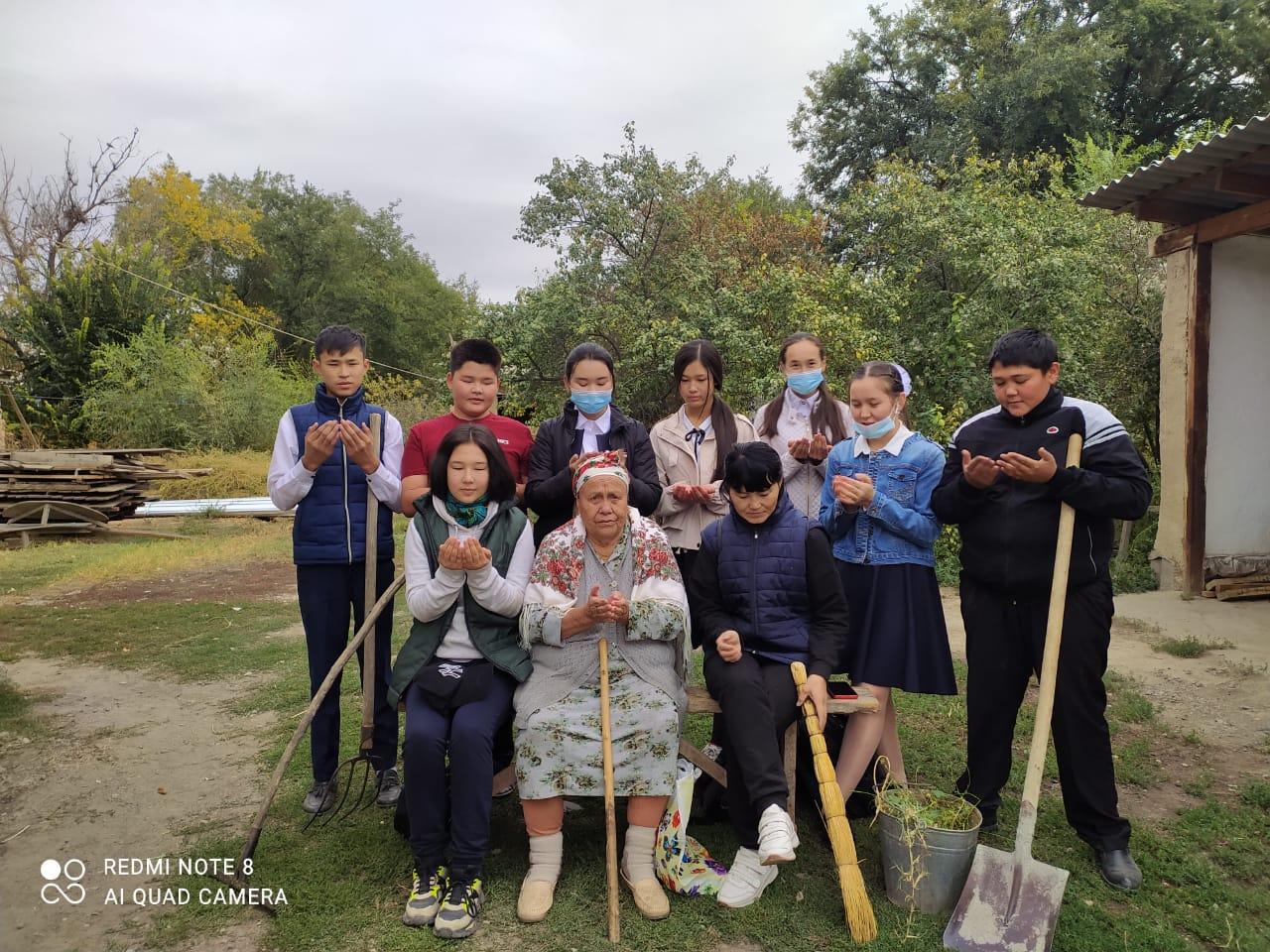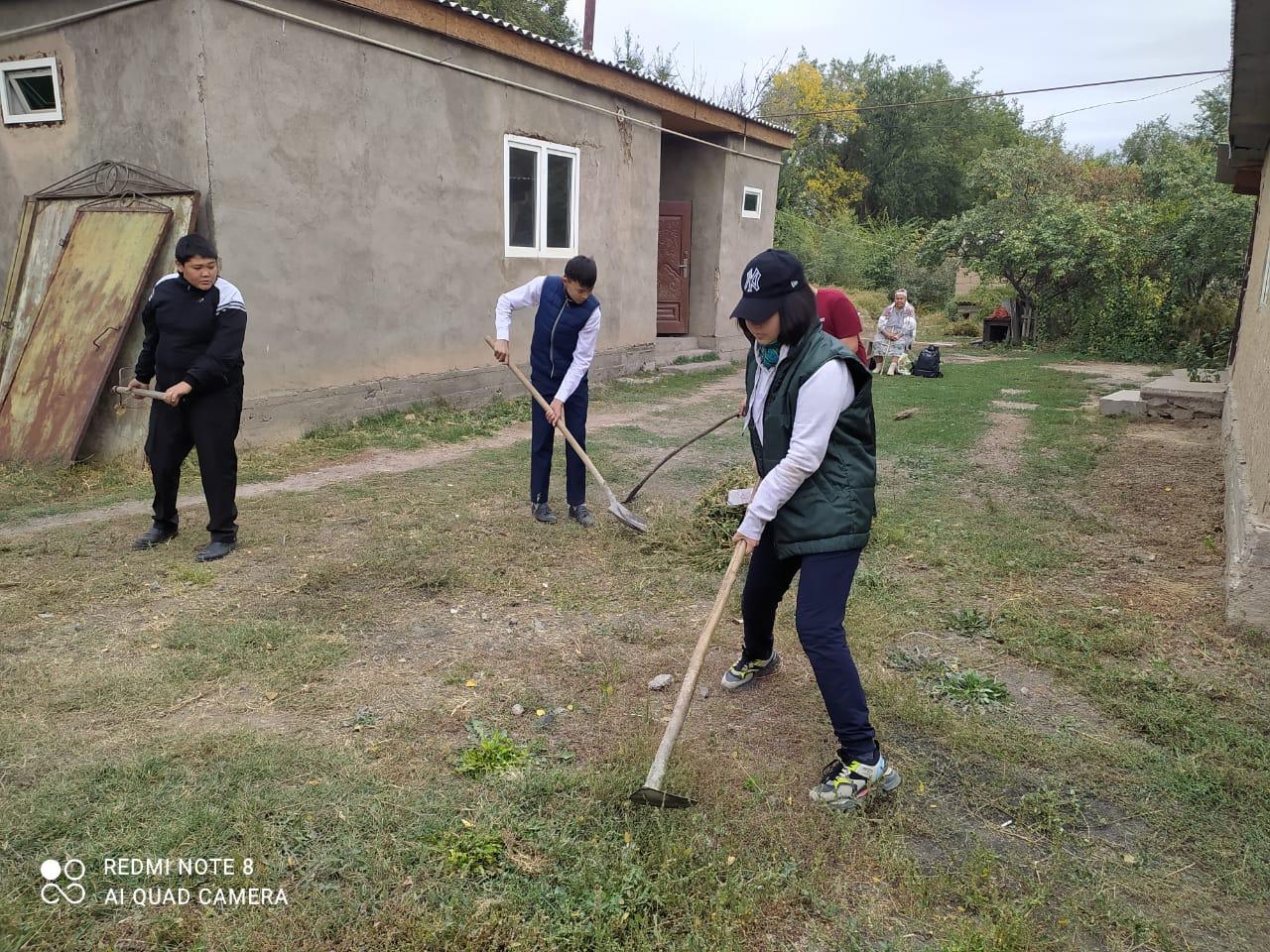 Шоқан Уәлиханов атындағы орта мектепте мектеп жанынан құрылған қамқоршылық тобы 10 А сынып оқушылары 1 қазан дүниежүзілік қарттар күні ауыл зейнеткері Исаева Даметкер апайдың ауласын, бақшасын жапырақтардан тазалап, үйдің ішіне де тазалық жұмыстарын жүргізіп қолғабыс етіп қайтты.