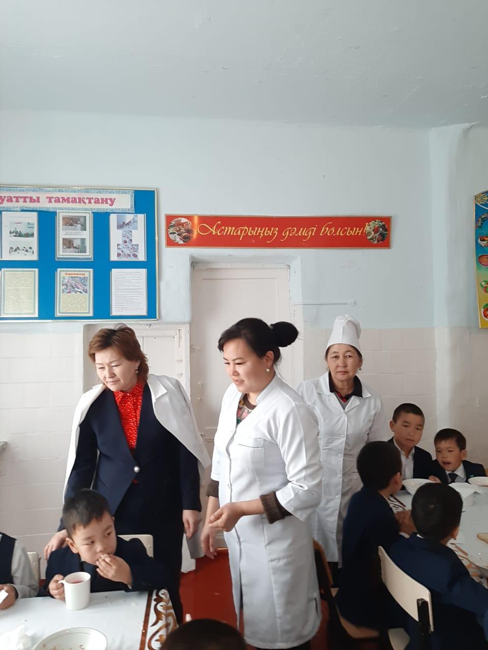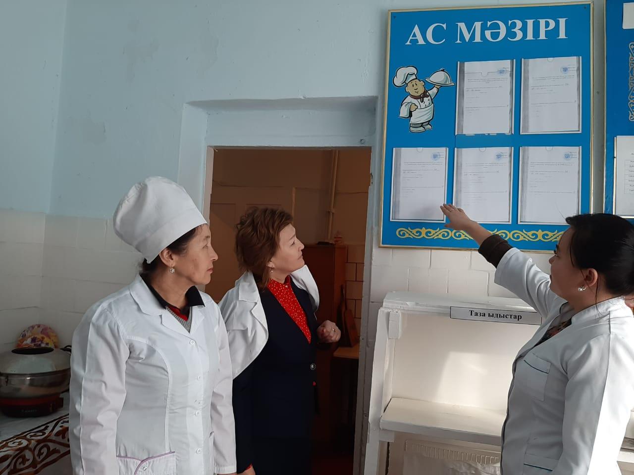 Қазақстан Республикасы Денсаулық сақтау министрлігінің 2017 жылғы 16 тамызындағы №611 бұйрығына сәйкес асханадағы санитарлық-эпидемиологиялық талаптардың сақталуына, яғни тазалық, асханадағы тоңазытқыштың дұрыс жұмыс істеуіне, ондағы заттардың бөлек сақталуына және аспазшының гигиеналық талаптарына қатаң сақтауына бақылау жүргізді. Сонымен қатар асхана тиісті құжаттардың сараптаға нәтижелеріне арналған бракераждық журналдың уақытылы жүргізіліп отырылуы бақыланды. Зерделеу барысында асханаға жеткізілген азық-түліктер сапасы тексерілді. Айлық барысында мектеп асханасында “Ашық есік” күні ұйымдастырылып, ата-аналар мектепке келіп ыстық тамақтың сапасын көрді. Сонымен қатар дұрыс тамақтануға байланысты оқушылармен ашық есік күніне келген ата-аналардың қатысуымен сынып сағаттары, түсіндірме жұмыстары жүргізілді.Ас мәзіріне сәйкес берілетін тамақтар күнделікті ауысып отырылады. Мектеп асханасында денсаулық бұрышы ұйымдастырылған. Ас мәзірін анықтау мақсатында ыстық тамақ туралы сауалнамалар алынды. Оқушыларға мектеп медбикесі дұрыс тамақтану туралы баяндама оқыды. Мектептің әлеуметтік педагогы атқарылған іс-шараларды facebook парақшасына салды.