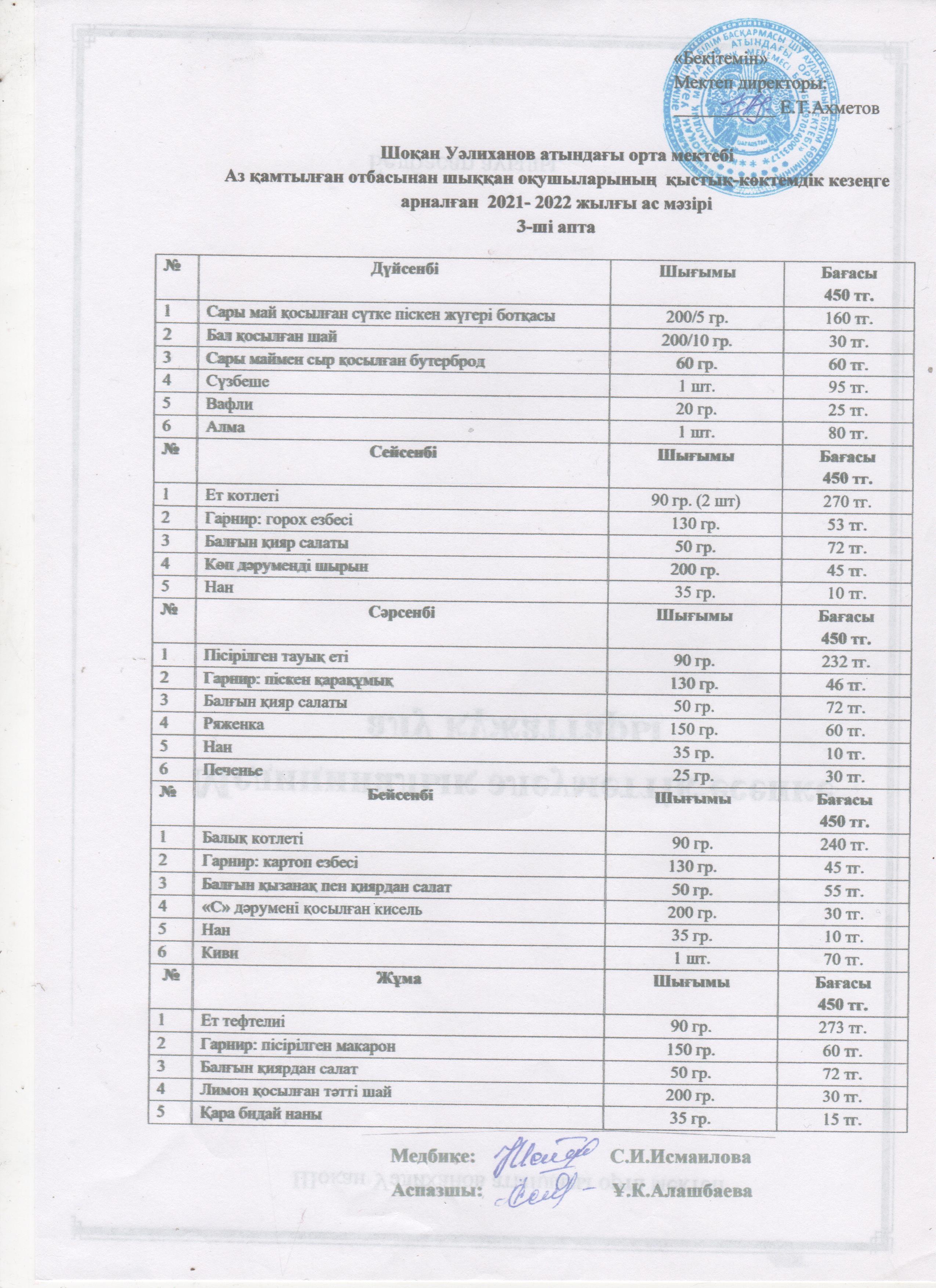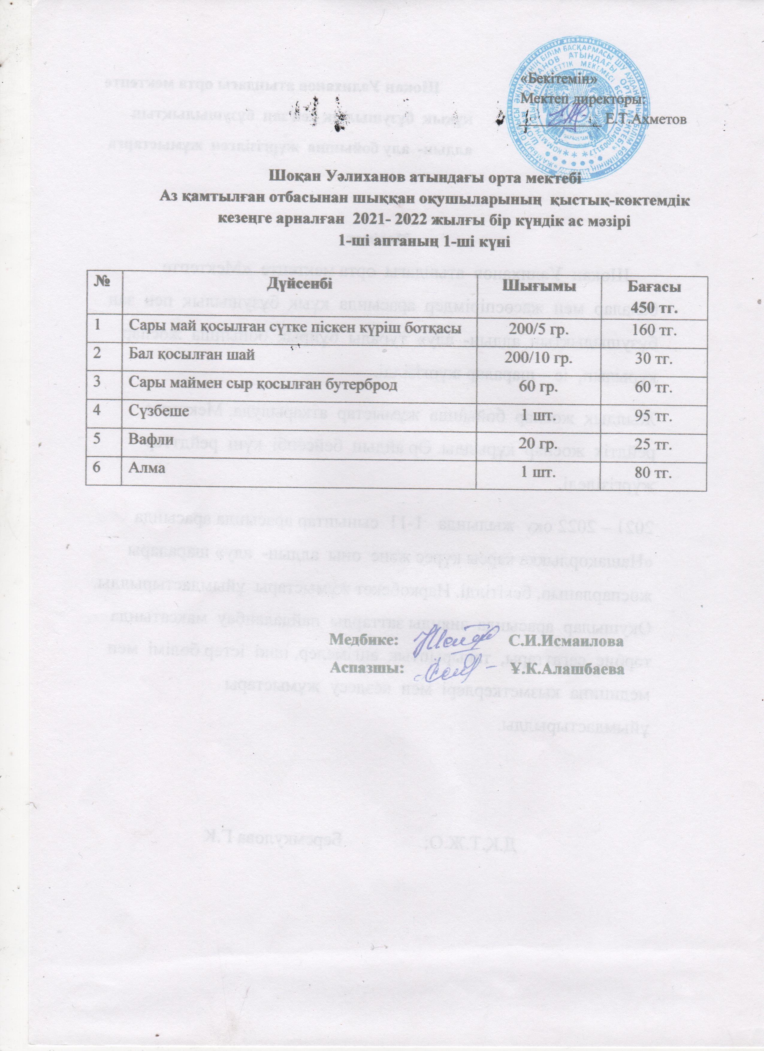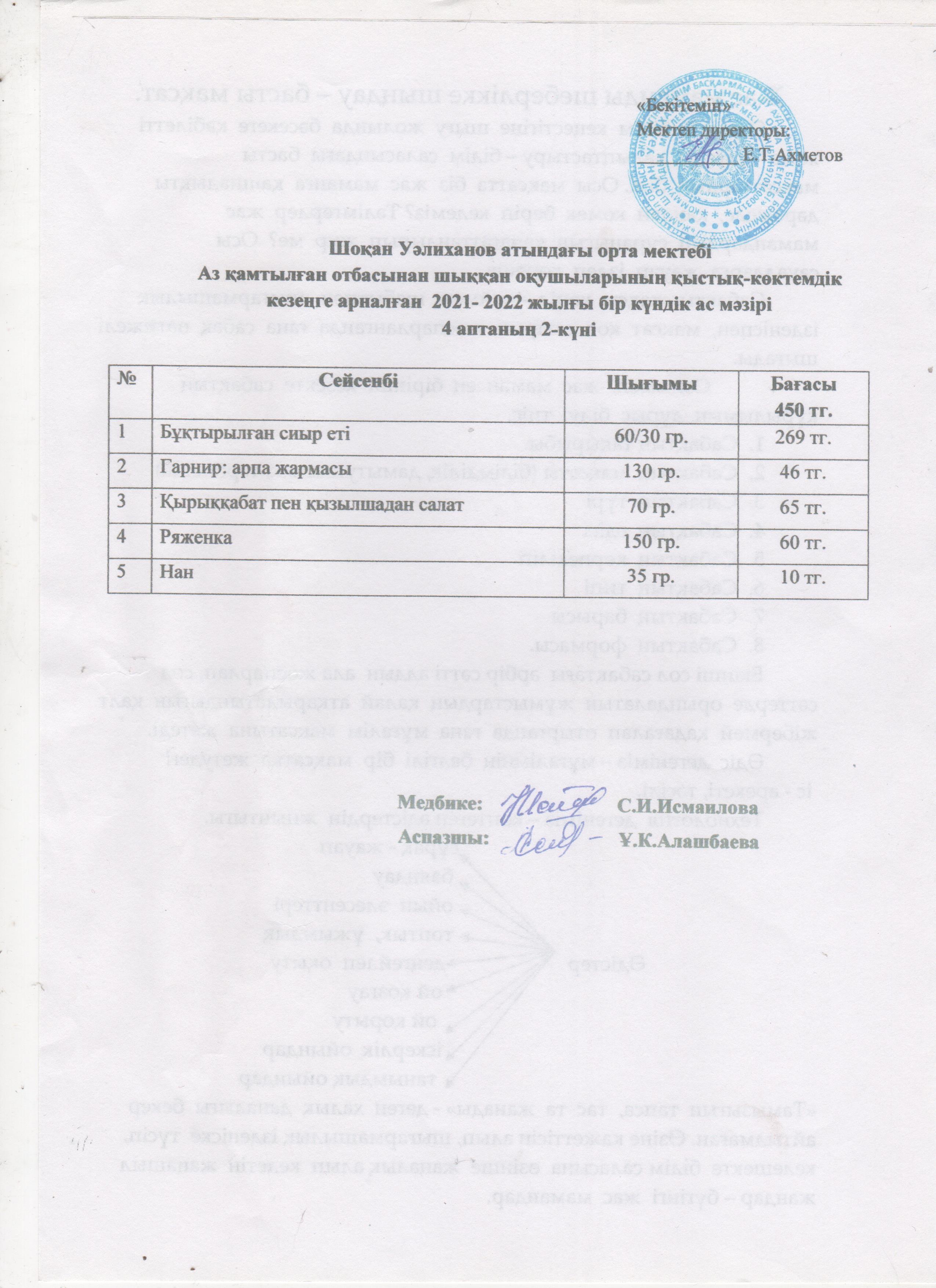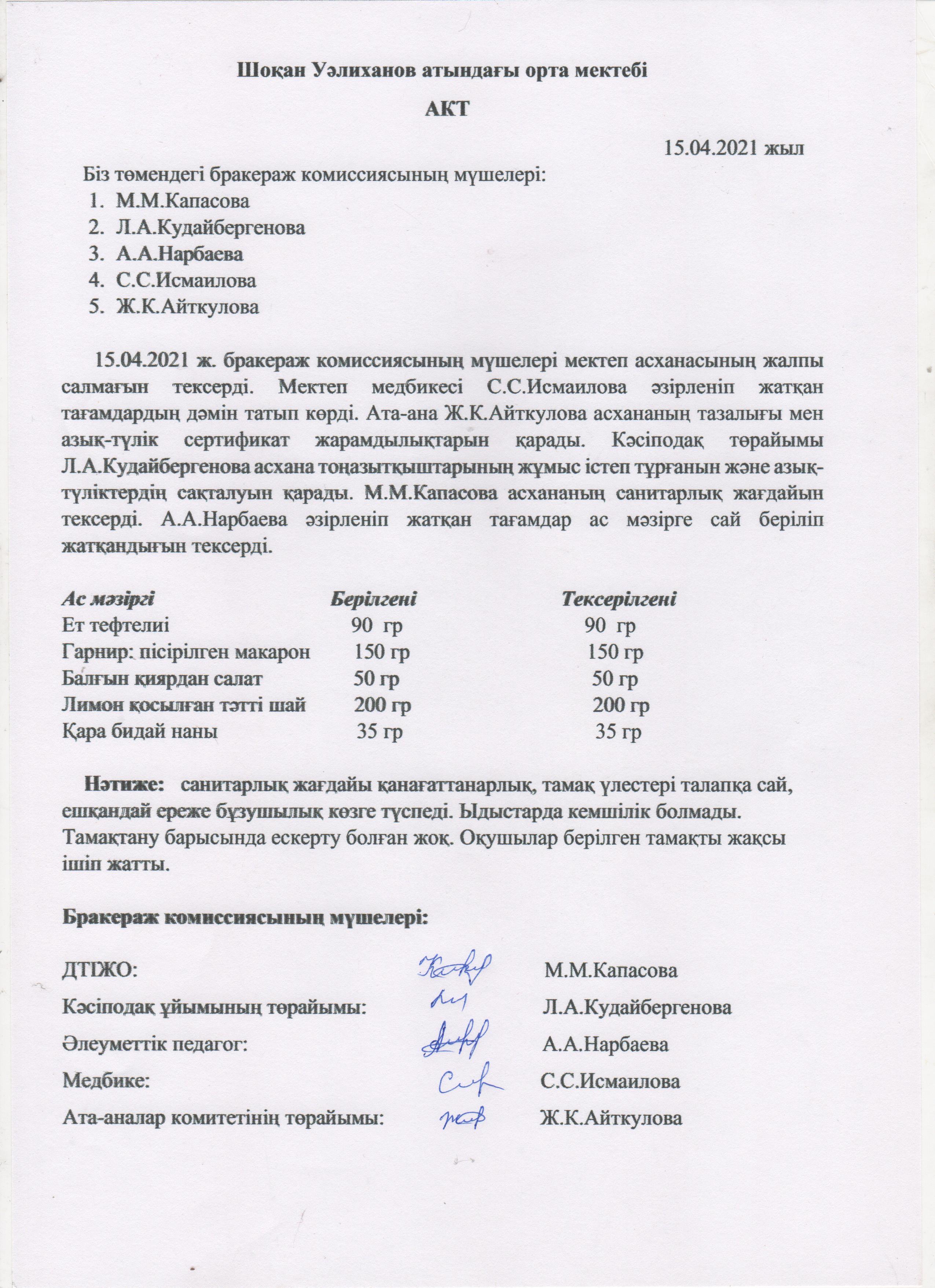 Ыстық тамақ бойынша профилактикалық жұмыстар » Ш.Уәлиханов атындағы орта мектеп