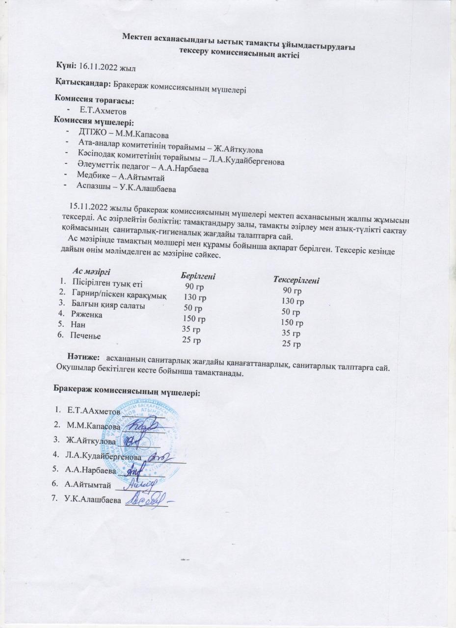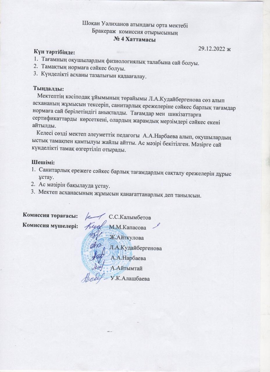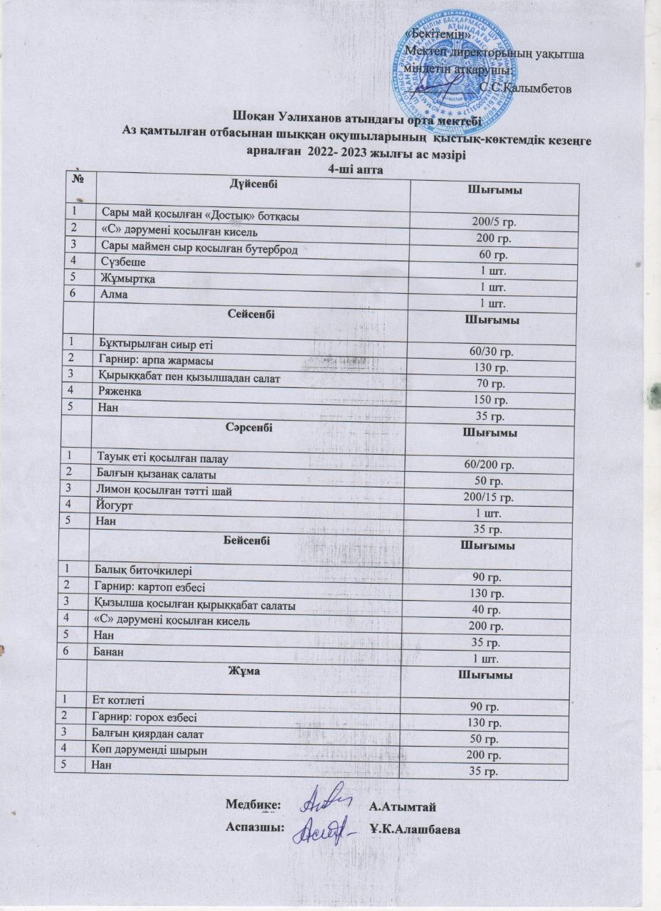 Ыстық тамақпен қамту » Ш.Уәлиханов атындағы орта мектеп