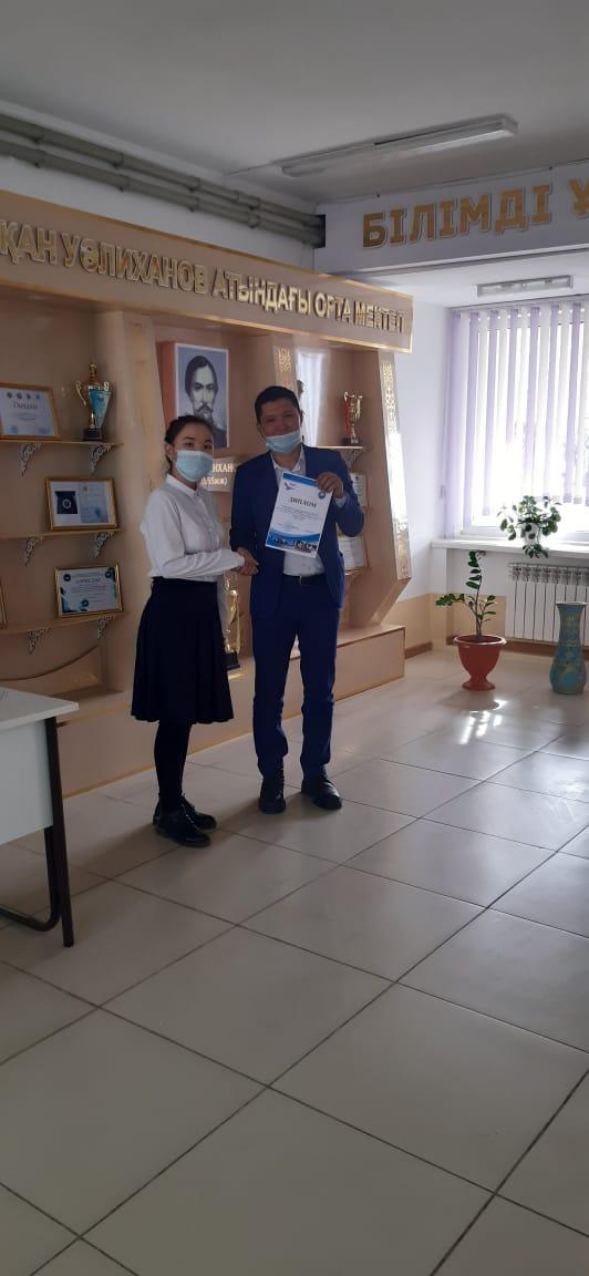 облыстық онлайн байқаудың "Туған өлкемнің жанашыры" номинация иегері Шу ауданы, Шоқан Уәлиханов атындағы орта мектебінің оқушысы Райқұл Сымбат марапатталды