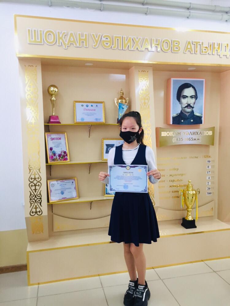 Шоқан Уәлиханов атындағы орта мектепте Жамбыл Жабаевтың 175 жылдығына орай аудандық қашықтықтан өткізілген буктрейлер байқауында "Ж. Жабаевтың шығармалары" кітабы номинациясы бойынша 2 дәрежелі Дипломмен 7 "Ә" сынып оқушысы Амантай Диана марапатталды.