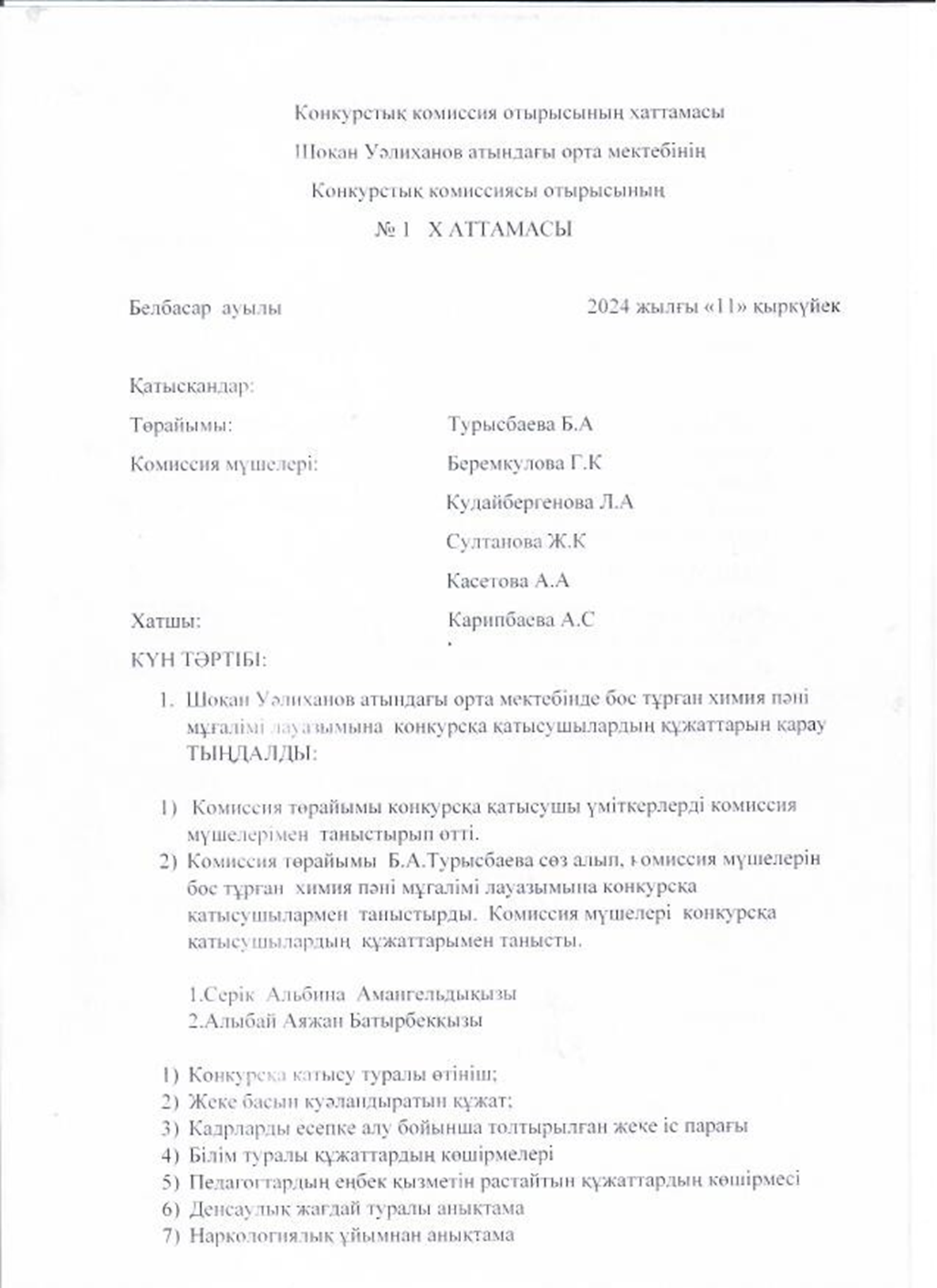 Конкурс хаттамасы » Ш.Уәлиханов атындағы орта мектеп