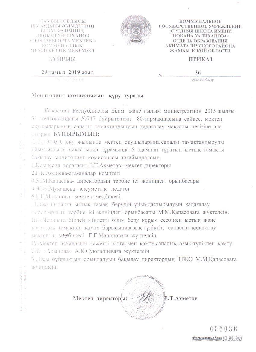 Ыстық тамақты ұйымдастыру туралы » Ш.Уәлиханов атындағы орта мектеп