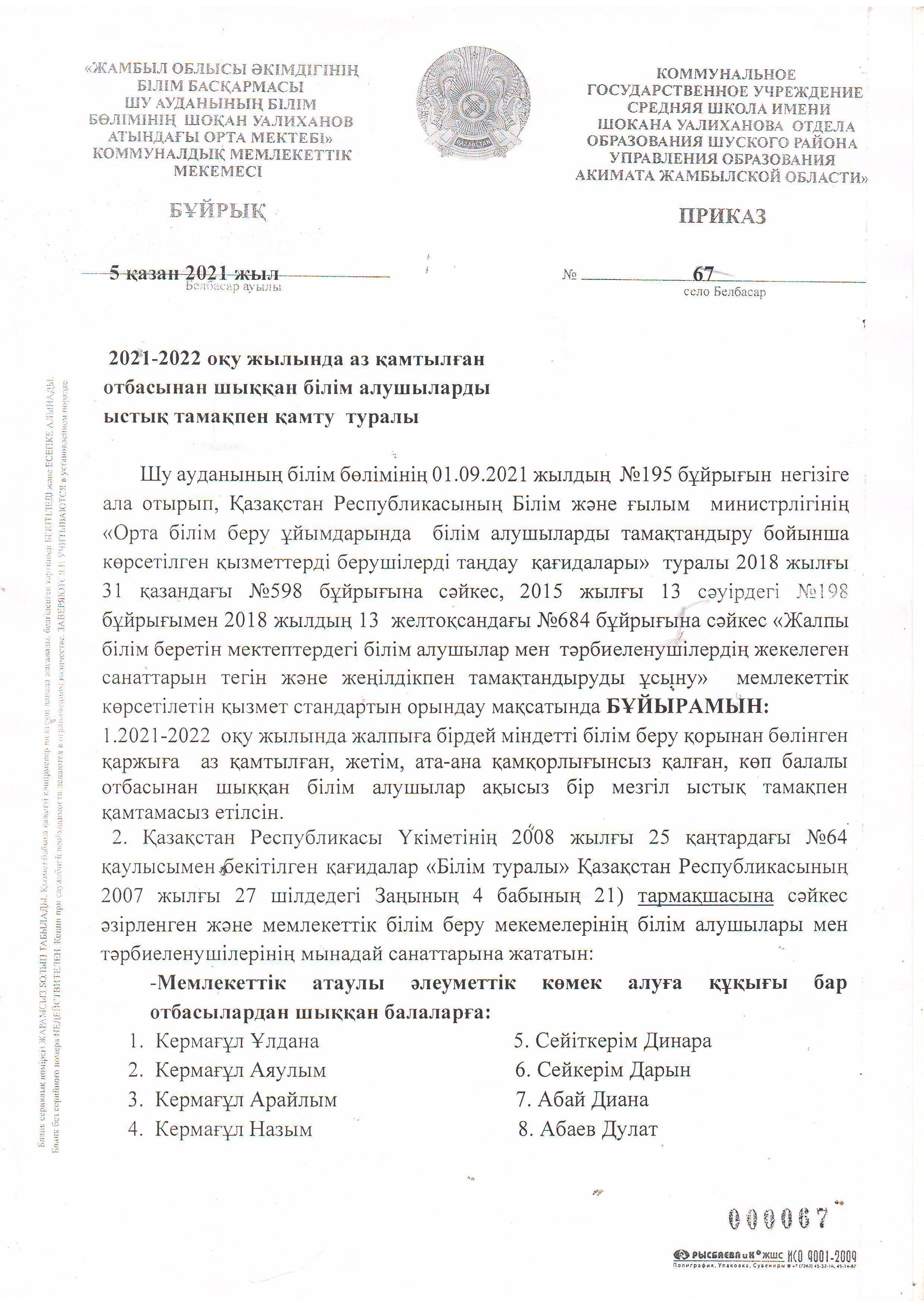 11 февраль 2022 0 1 2 3 4 5 Ыстық тамақты ұйымдастыру туралы 2021 -2022 оқу жылында Шоқан Уәлиханов атындағы орта мектептегі тегін ыстық тамақты ұйымдастыру туралы