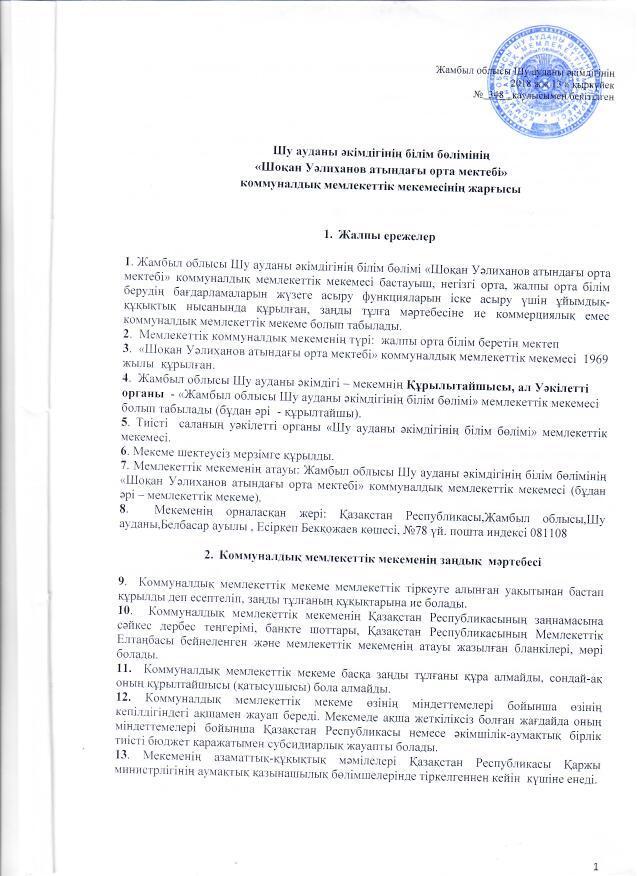 жарғы » Ш.Уәлиханов атындағы орта мектеп